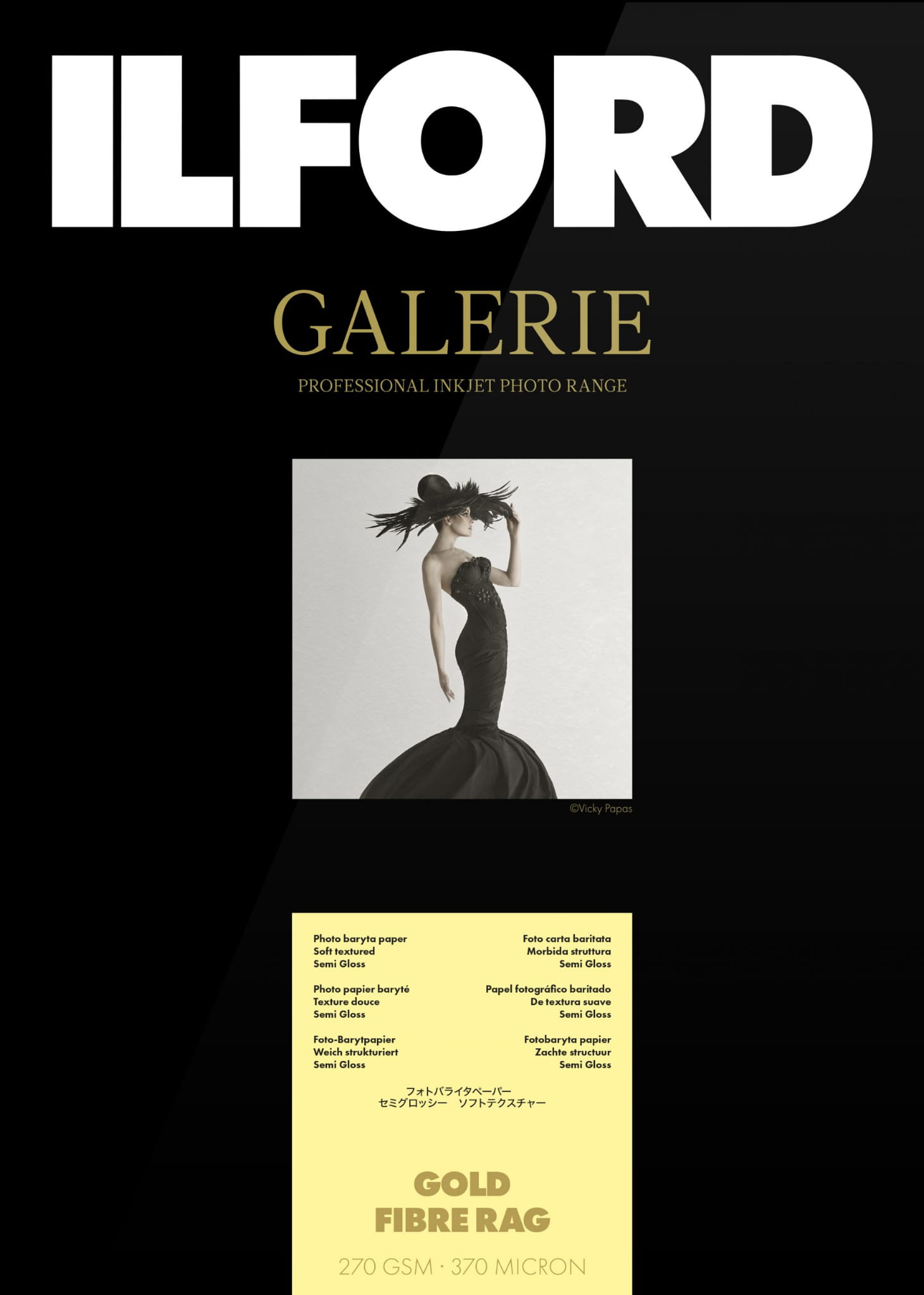 Jest dopełnieniem przez Ilforda portfolio papierów fotograficznych barytowych i podobnych do baryty. Papier fotograficzny Gold Fibre Rag dzięki powierzchni o wyjątkowej, delikatnej fakturze i półmatowym wykończeniu, idealnie nadaje się do obrazów o bardzo wysokiej rozdzielczości z szerszym zakresem tonalnym, co czyni go doskonałym wyborem do wydruków o jakości wystawowej. Ten uniwersalny papier fotograficzny jest idealny do reprodukcji kolorowych obrazów o wysokim nasyceniu, intensywności oraz głębi jak również do tworzenia tradycyjnych monochromatycznych obrazów. Jasna biel powierzchni gwarantuje intensywne czarno-białe obrazy, które idealnie komponują się z wyglądem wydruków na bazie halogenków srebra.