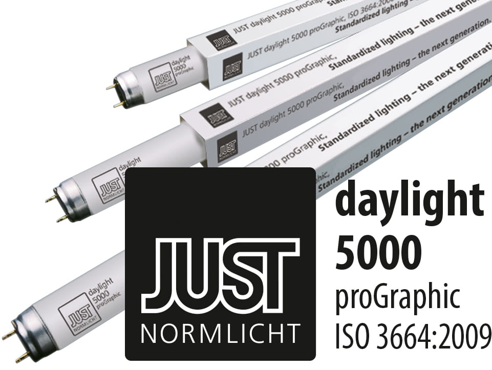 Świetlówka Just Normlicht serii daylight proGraphic to unikatowe oświetlenie w zastosowaniu dla pre-press i druku. Świetlówki Just Normlicht proGraphic zgodne z ISO 3664:2009 zapewniają poprawność postrzegania barw.