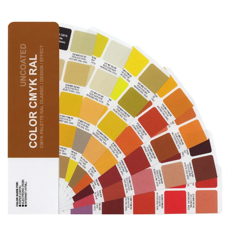 Wzornik kolorów COLOR CMYK RAL Unoated przedstawia wizualną symulację wszystkich kolorów RAL z bibliotek Classic, Design i Effect w czterokolorowym druku CMYK. Wzornik COLOR CMYK RAL to niezastąpione narzędzie wyboru i specyfikacji kolorów RAL w konwersji na druk CMYK.